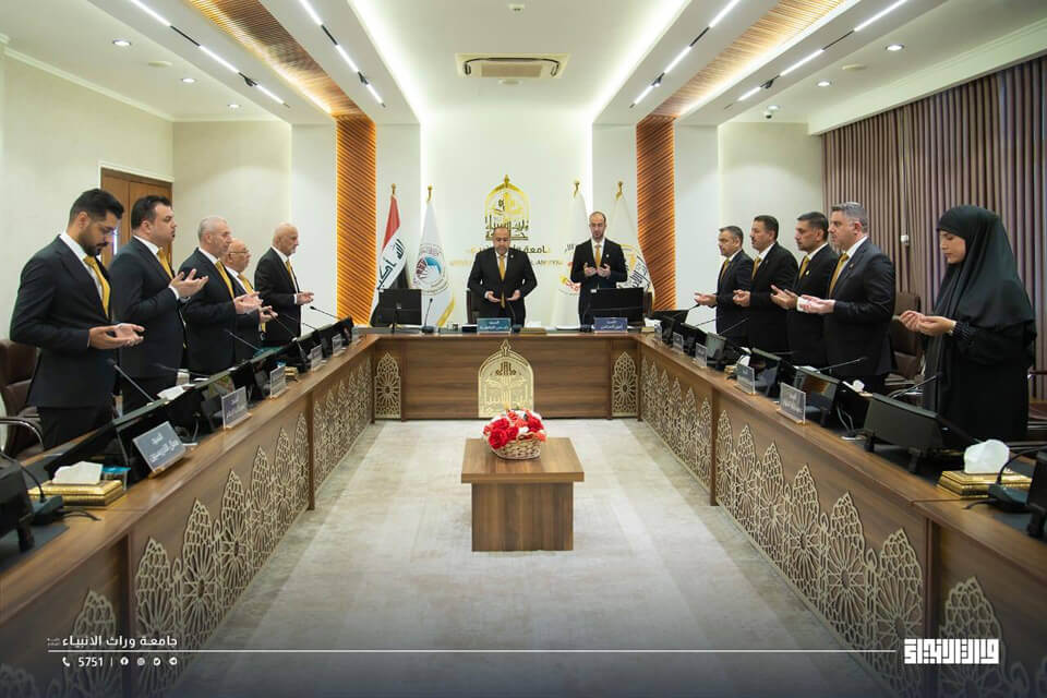 مجلس جامعة وارث الأنبياء (عليه السلام) يقف وقفة حداد وقراءة سورة الفاتحة على روح المرحوم المدرس المساعد حيدر السلامي، التدريسي في كلية الإعلام، الذي وافاه الأجل إثر مرضٍ عضال.