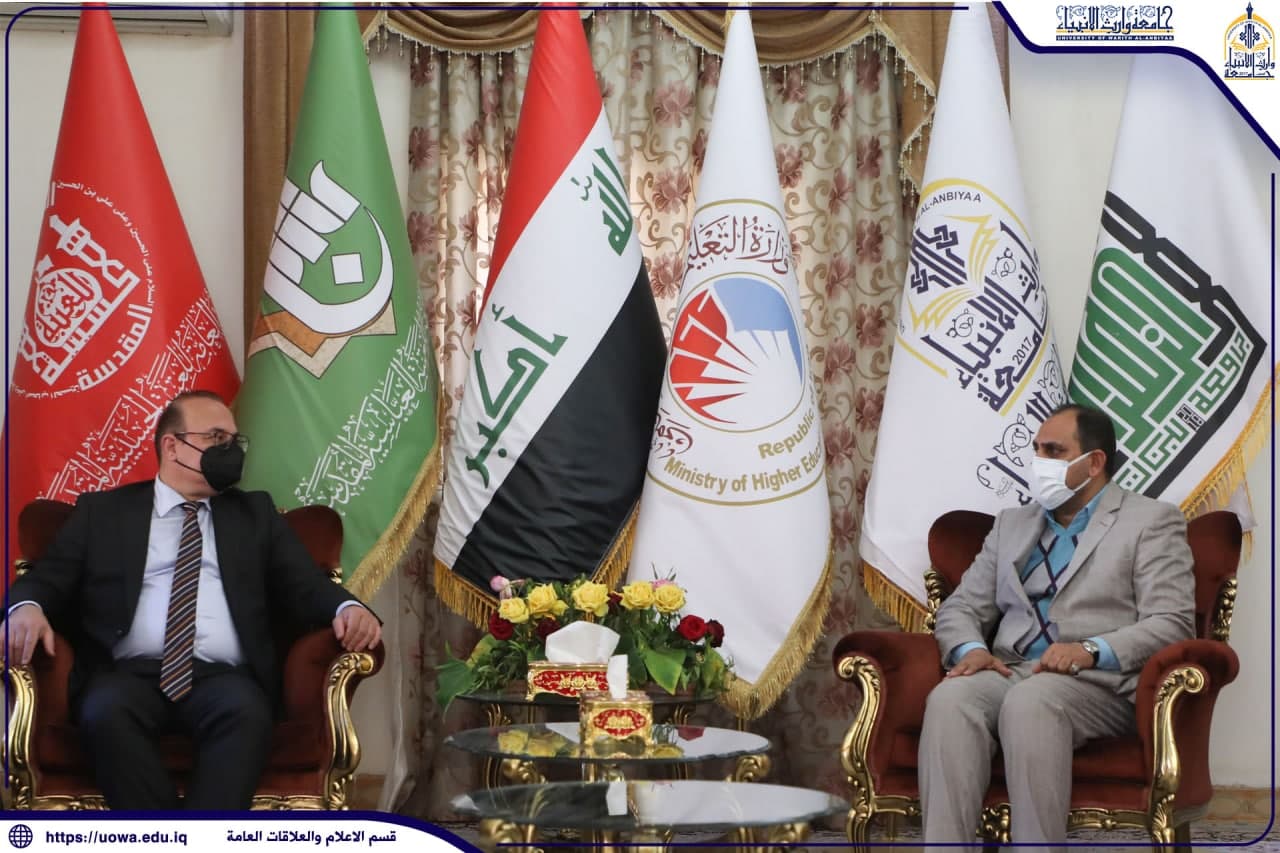 زار وفد من جامعتي الفرات الأوسط ودهوك التقنيتين جامعة وارث الانبياء (عليه السلام) للتباحث في سبل التعاون العلمي بين الجامعات وللاطلاع على الجامعة ، حيث كان باستقبال الوفد السيد المساعد العلمي وعدد من السادة عمداء الكليات والتدريسيين ، تمثل الوفد بالأستاذ الدكتور مظفر صَادِق الزُهَيْري رئيس جامعة الفرات الأوسط التقنية و الأستاذ الدكتور عدنان محسن عبدالعزيز رئيس جامعة دهوك التقنية ، تضمنت الزيارة جولة في مختلف كليات ومختبرات واروقة الجامعة ، وقد ابدى اعضاء الوفد اعجابهم الكبير بما تحتويه الجامعة من قاعات دراسية ومختبرات علمية وتطور عمراني والتقدم العلمي ،واثنوا على دور العتبة الحسينية المقدسة في تبنيها لمشروع الجامعات سعياً منها للنهوض بالواقع التعليمي في بلدنا العزيز .