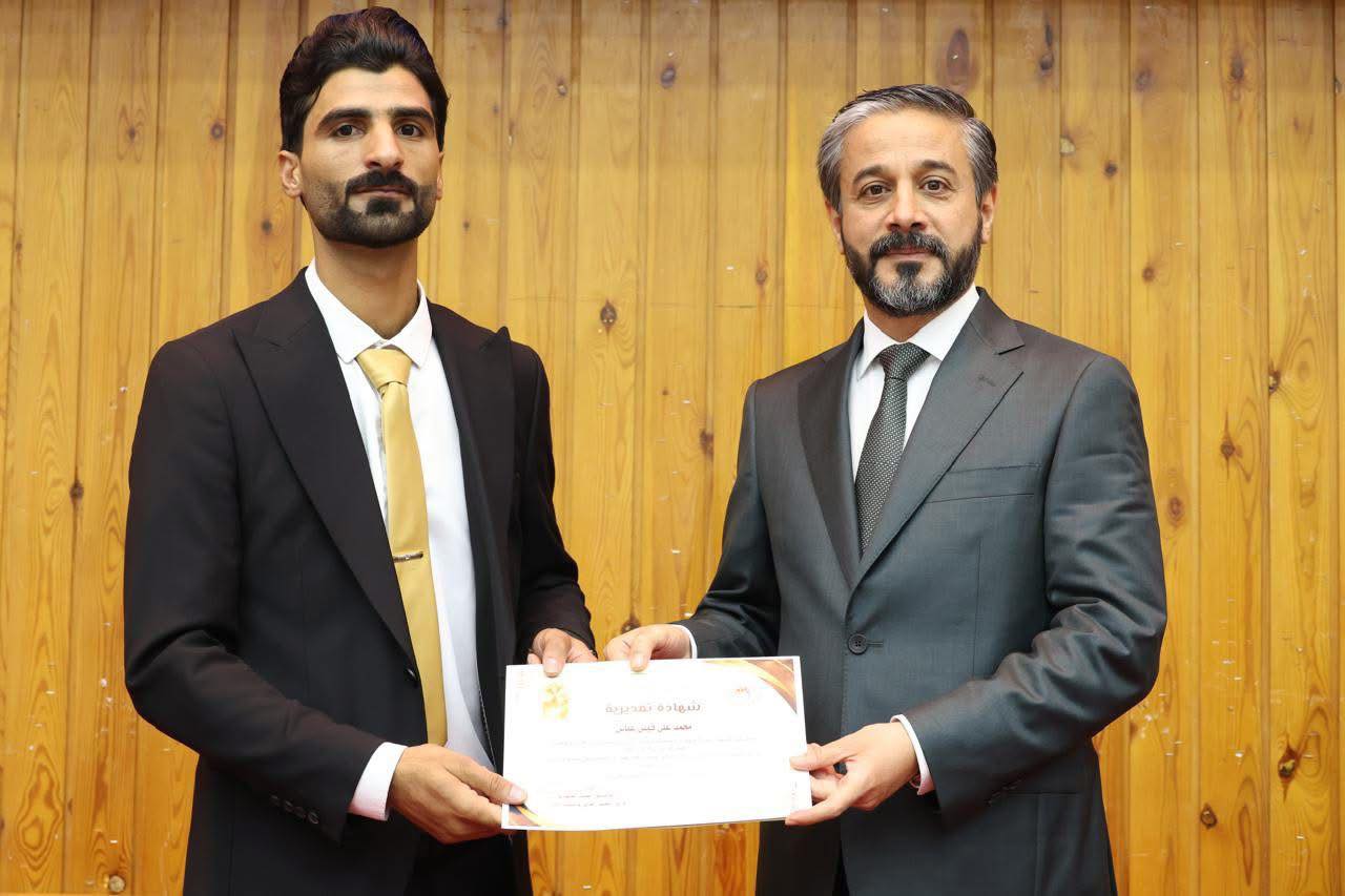 كرم معالي وزير التعليم العالي والبحث العلمي الدكتور نعيم العبودي الطلبة الأوائل الفائزين بجائزة الإبداع والتميز في الاختبار التقويمي الذي شمل التخصصات الطبية والهندسية والقانونية
