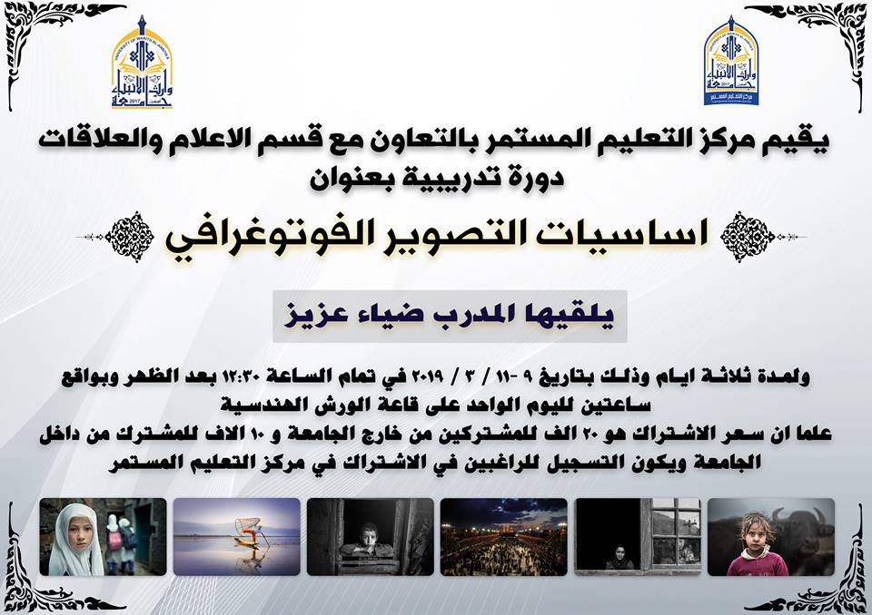 يدعوا مركز التعليم المستمر في جامعة وارث الأنبياء (عليه السلام) المشاركين في دورة الإسعافات الأولية المقامة من قبل المركز المذكور اعلاه لاستلام شهادات المشاركة من المركز خلال مدة اقصاها ثلاثة أيام
