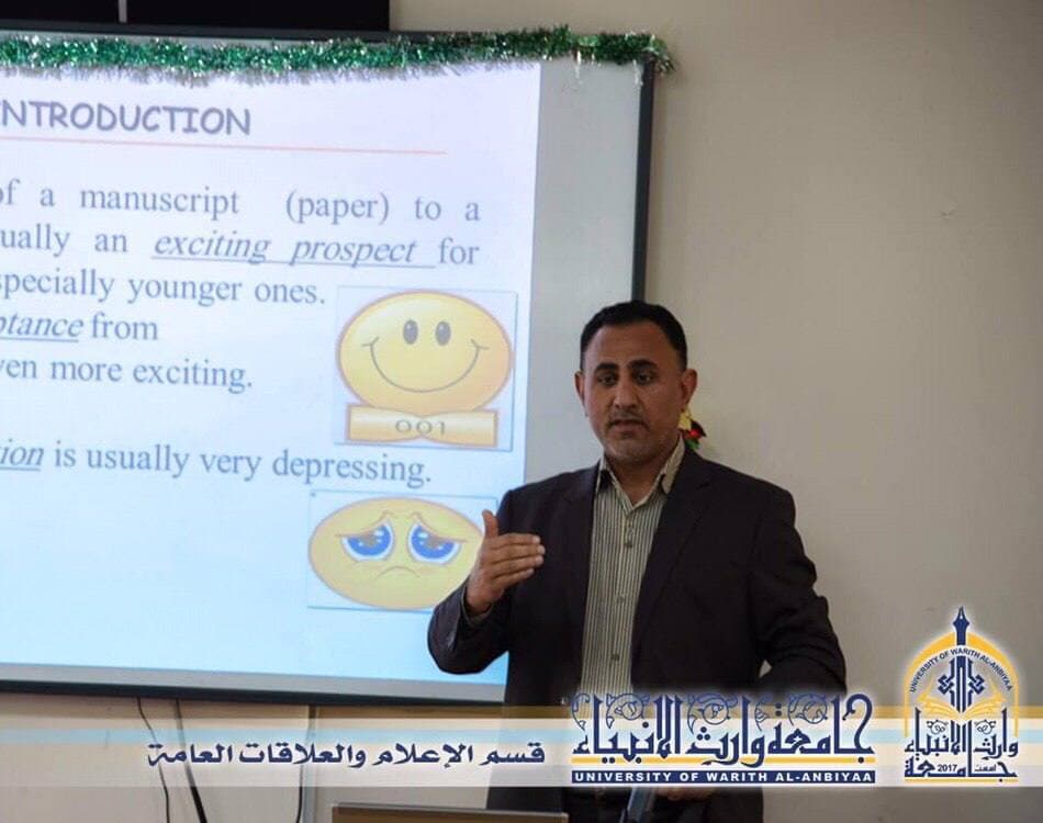 القى رئيس فرع اساسيات التمريض الاستاذ المساعد الدكتور نسيم صقر وبالمشاركة مع المدرس رهف عقل رجوب  والمدرس المساعد خلود هاشم سلوم ندوة علمية حول افاق تطوير البحث العلمي وبحضور تدريسي كلية التمريض