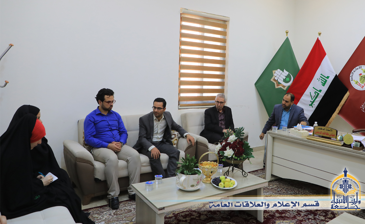 زار وفد رسمي ممثلاً عن جامعة وارث الانبياء (عليه السلام) وجامعة الزهراء (عليها السلام) التابعتين للعتبة الحسينية المقدسة برئاسةالسيد رئيس جامعة وارث الانبياء (عليه السلام) وكالةً الاستاذ الدكتور عباس الدعمي جامعة كربلاء لتقديم التهاني والتبريكات الى الدكتور باسم خليل السعيدي بمناسبة تسنمه رئاسة جامعة كربلاء وكالة .من جانبه قدم الدكتور السعيدي شكره للوفد المذكور على زيارتهم مؤكداً حرص جامعته على التعاون مع الجامعتين لاجل النهوض بالواقع التعليمي في بلدنا العزيز .