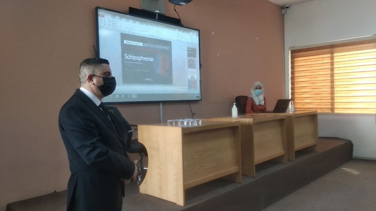 القى رئيس فرع اساسيات التمريض الاستاذ المساعد الدكتور نسيم صقر وبالمشاركة مع المدرس رهف عقل رجوب  والمدرس المساعد خلود هاشم سلوم ندوة علمية حول افاق تطوير البحث العلمي وبحضور تدريسي كلية التمريض