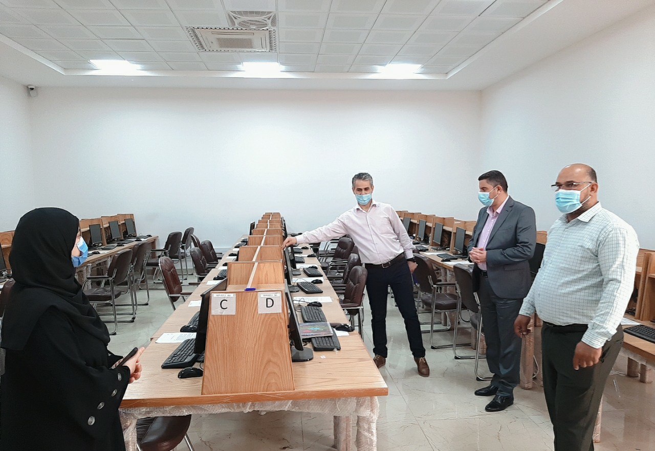 وبمتابعة حثيثة من قبل السيد عميد الكلية ( ا.م.د مرتضى غانم ) على عمليك سير الامتحانات والالتزام باجراءات الوقاية والسلامة .