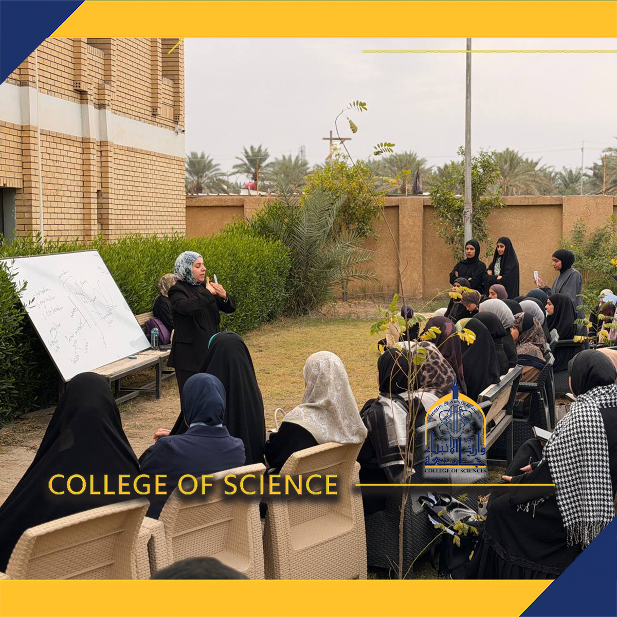 برعاية السيد رئيس جامعة وارث الأنبياء الأستاذ الدكتور إبراهيم الحياوي، وبإشراف عميد كلية العلوم الإسلامية الأستاذ المساعد الدكتور طلال الكمالي، نظّمت شعبة شؤون المرأة في الجامعة بازارًا خيريًا بعنوان "صُنع بأيادٍ عراقية"، وذلك ضمن محور التطوير الاقتصادي للاستراتيجية الوطنية للمرأة العراقية، وبما ينسجم مع أهداف التنمية المستدامة للأمم المتحدة ولا سيّما الهدف الخامس (المساواة بين الجنسين) والهدف الثامن (العمل اللائق ونمو الاقتصاد) والهدف الثاني عشر (الاستهلاك والإنتاج المسؤولان).