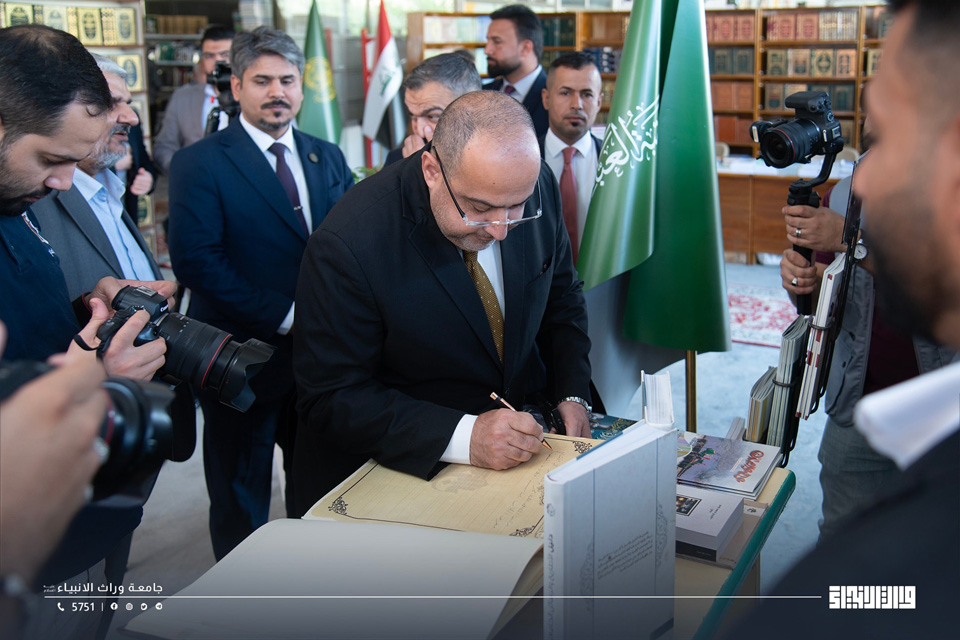 In commemoration of the birth anniversary of Lady Zainab al-Kubra (peace be upon her), Warith Al-Anbiyaa University (peace be upon him) hosted the exhibition “Al-Shajarah Al-Tayyibah lil-Kitab” organised by the Festival and Religious Events Department of the Holy Al-Hussain Shrine Secretariat, with the presence of the University President, Prof. Dr. Ibrahim Saeed Al-Hayyawi, along with faculty members and students.