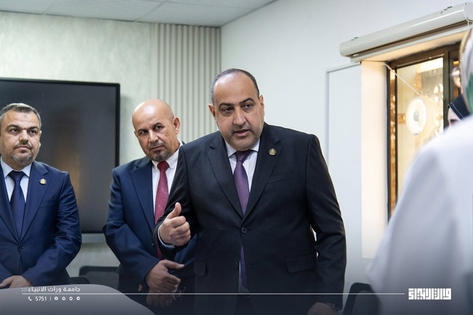 The President of the University of Warith Al-Anbiyaa, Professor Dr Ibrahim Saeed Al-Hayyawi, accompanied by the Assistant for Scientific Affairs, conducted a field tour of several university facilities to follow up on service provision and assess students’ needs, reflecting the university’s commitment to fostering an advanced learning environment that meets the requirements of modern academic practice.