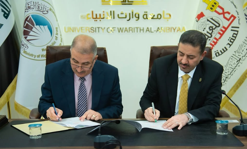 The Dean of the College of Islamic Sciences, Prof. Dr. Talal Al-Kamali, representing the University of Warith Al-Anbiya, signed a scientific and cultural agreement with the University of Religions and Sects in the Islamic Republic of Iran... It is worth noting that this agreement includes the exchange of scientific expertise between the two universities and teaching staff and holding scientific conferences in a way that contributes to supporting and developing the scientific and research movement in the two universities.